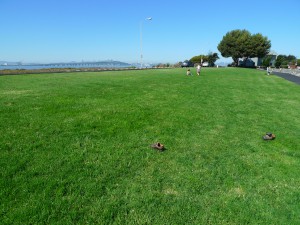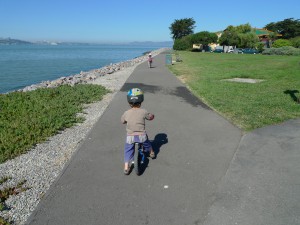 That was the end of the bike ride because Olive needed to head back to the bathroom. Then it was time to play on the grass.